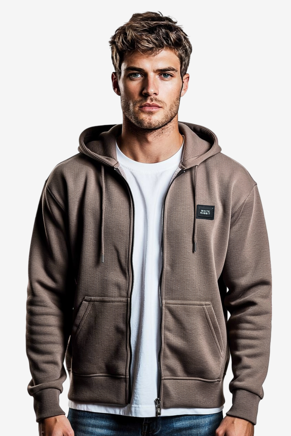 White Rabbit Men’s Cotton Piqué Sweatshirt with Mixed-Back Fabric – High-Quality Comfortable Everyday Wear – Brown