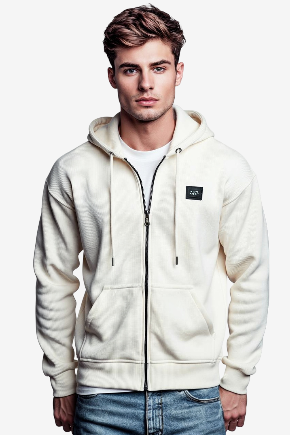 White Rabbit Men’s Cotton Piqué Sweatshirt with Mixed-Back Fabric – High-Quality Comfortable Everyday Wear – Off White