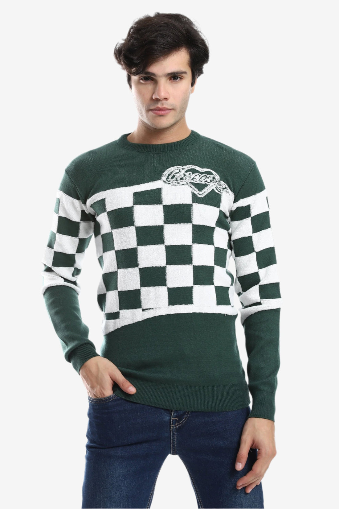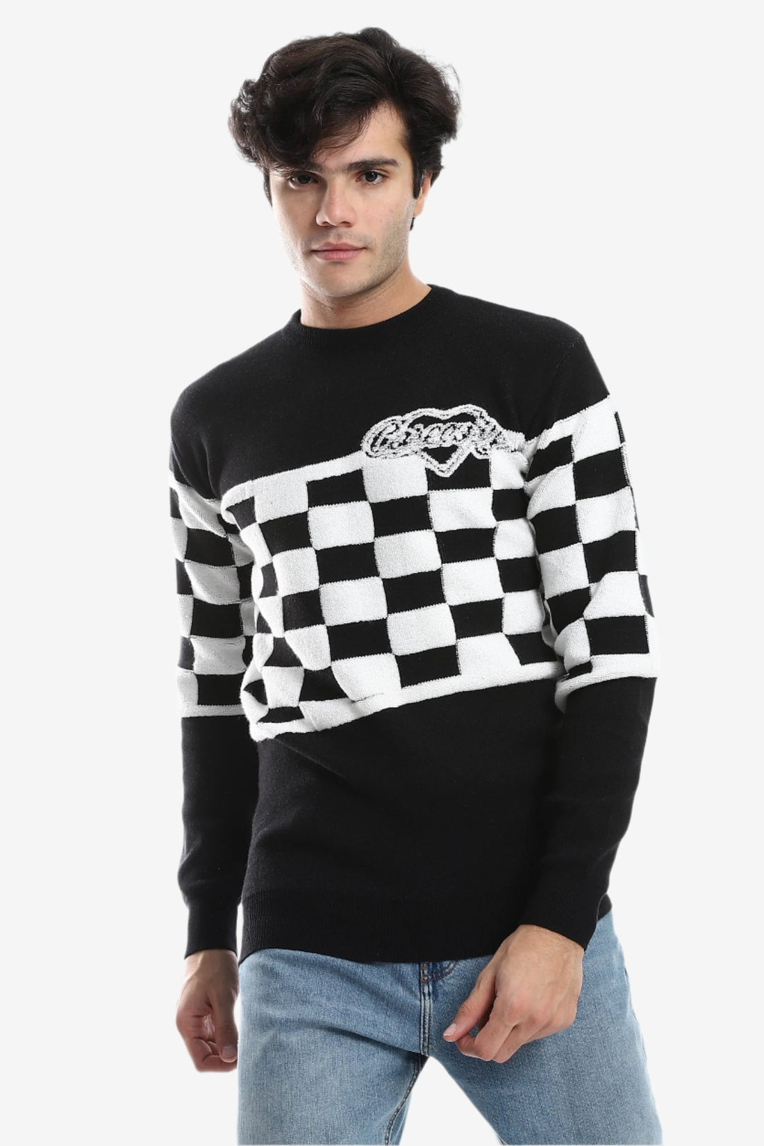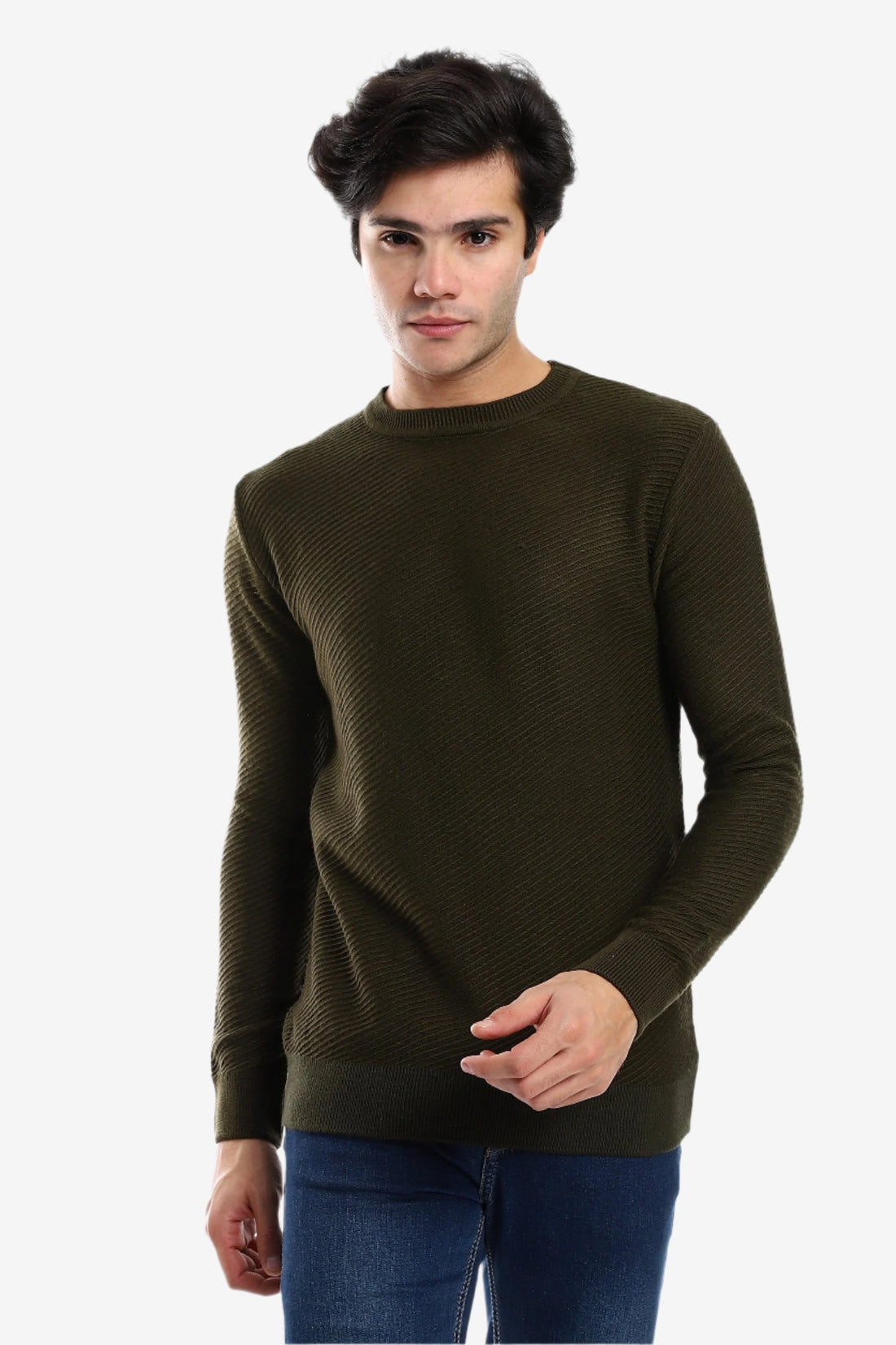 بلوفر محبوك بحاشية مضلعة – أسود-زيتوني-