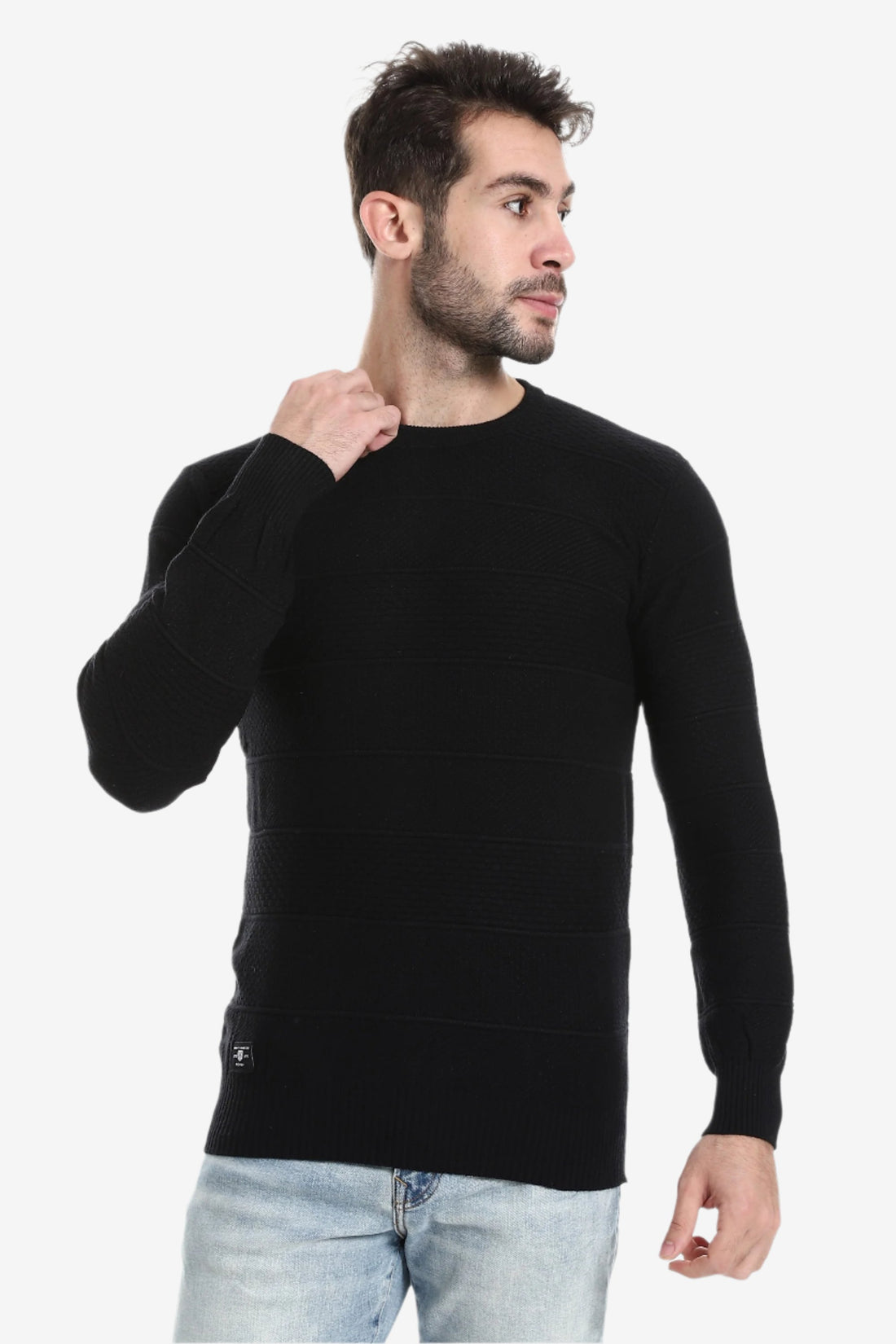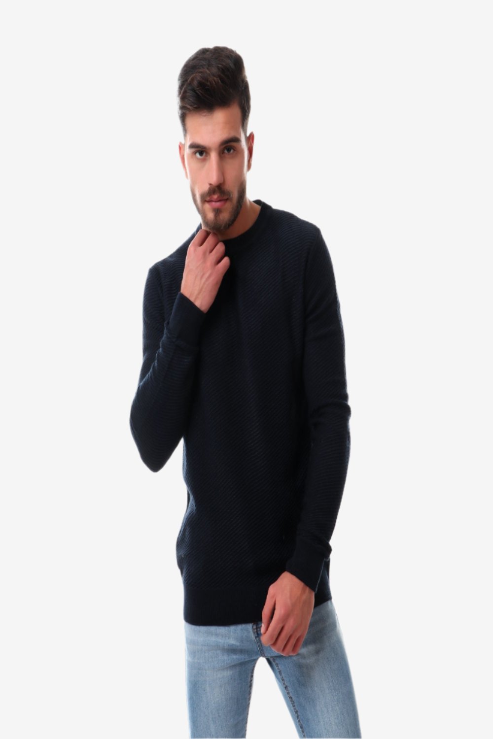 بلوفر محبوك بحاشية مضلعة - كحلي
