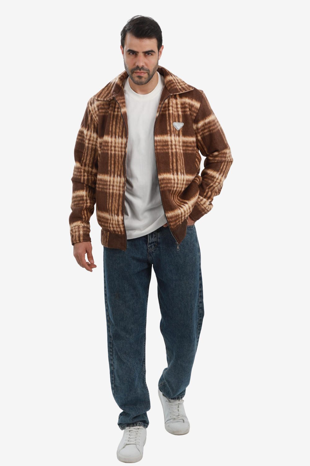 Men’s Plaid Wool Blend Zip Jacket