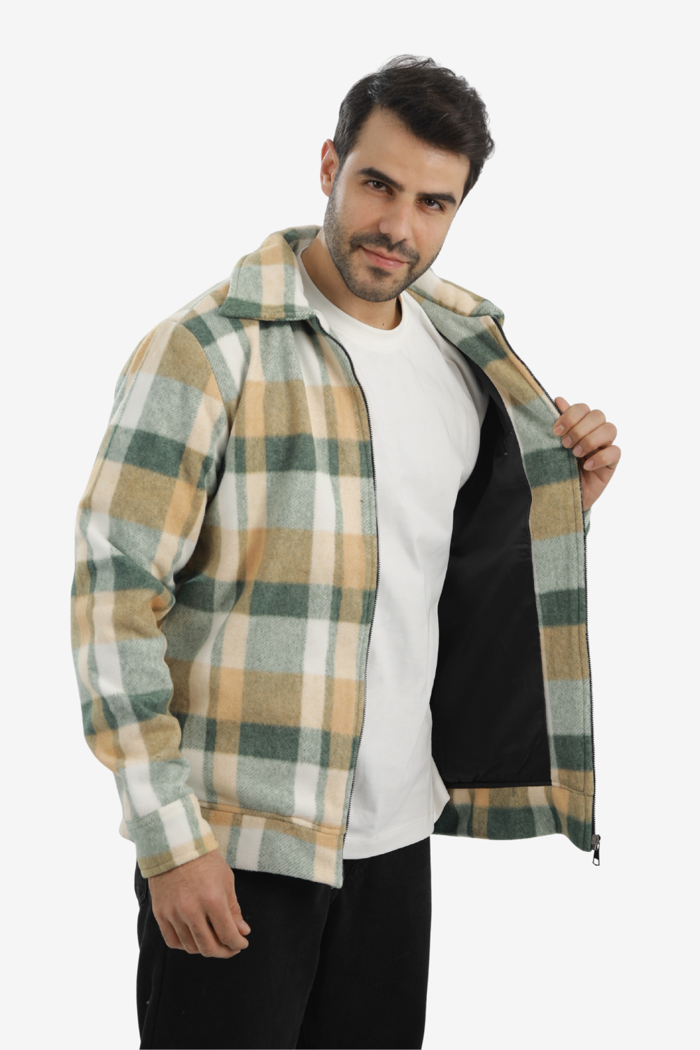 Men’s Plaid Wool Blend Zip Jacket