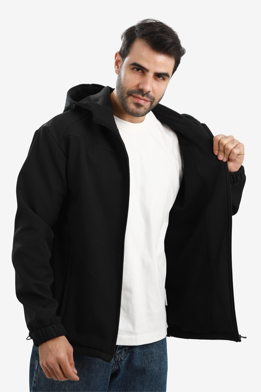 Men’s Softshell Water-Resistant Jacket – Full Zip Hooded Design