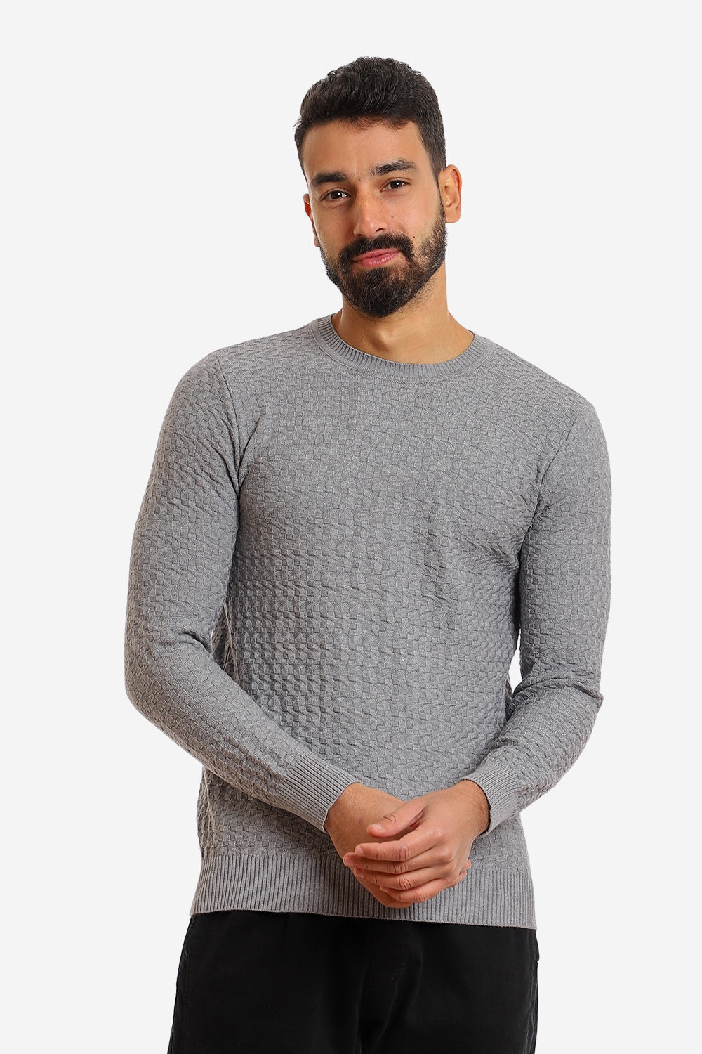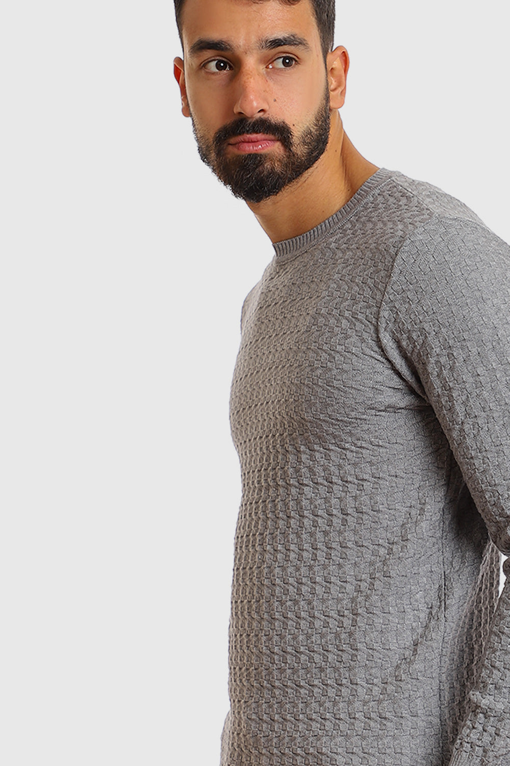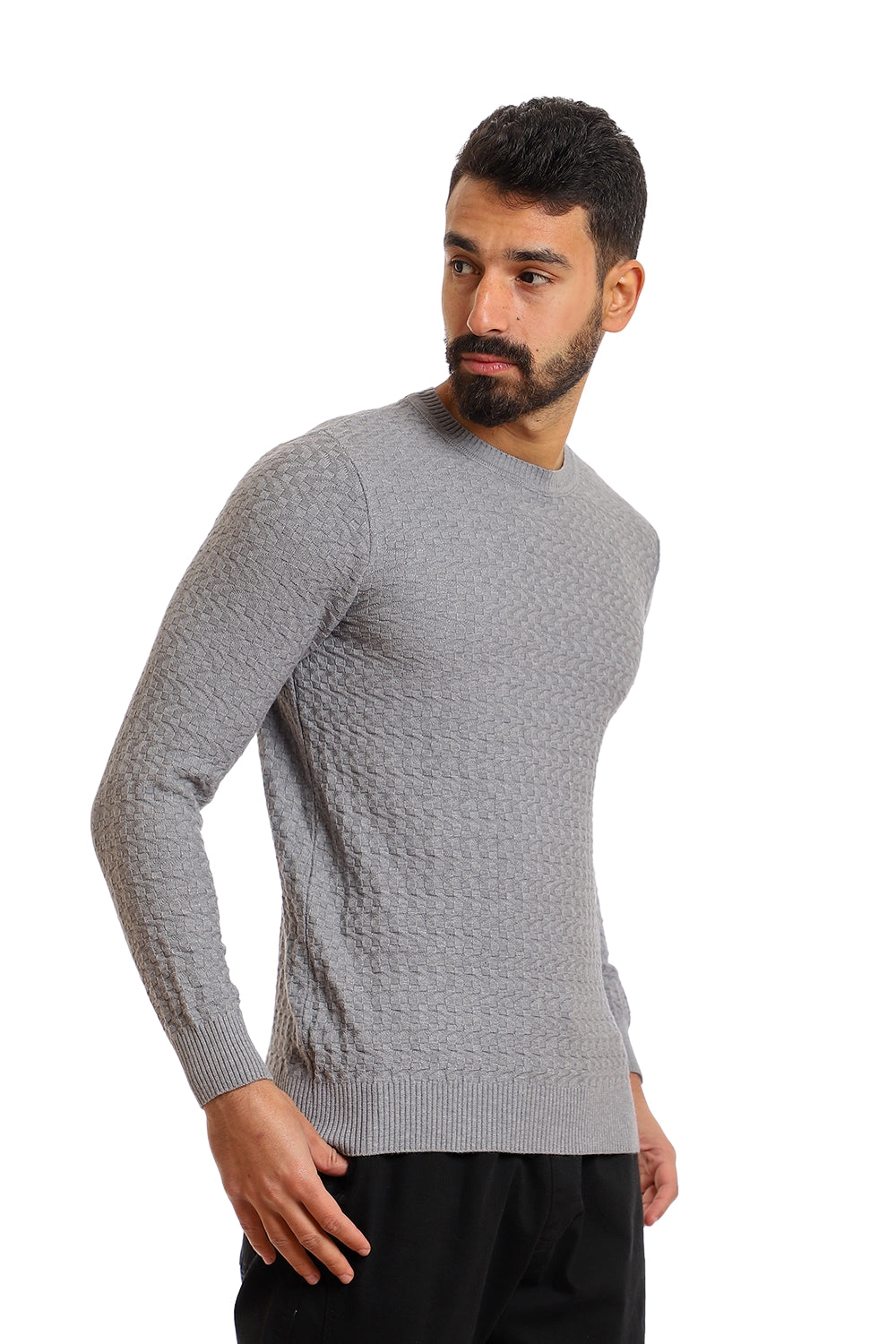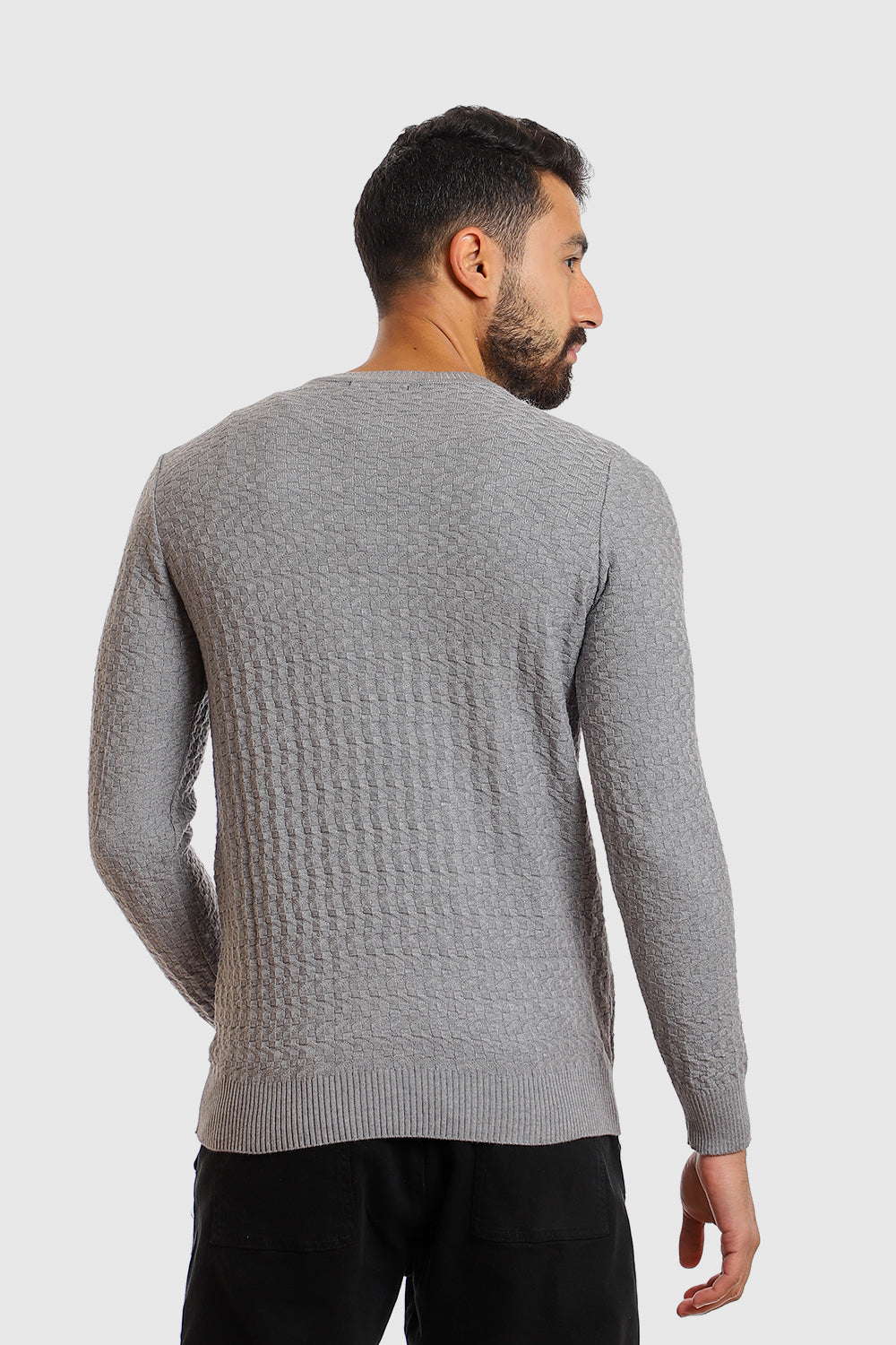 جولة الرقبة الانزلاق على بلوفر رمادي فاتح