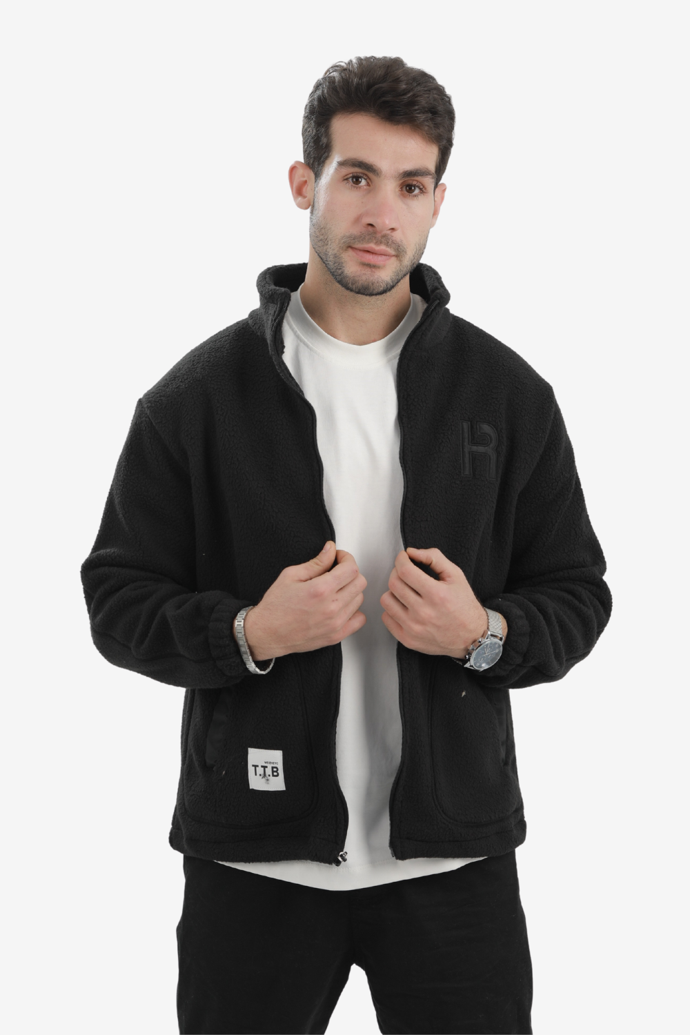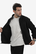 Ribbed Cuffs & Hem Quilted Hooded Jacket -Black