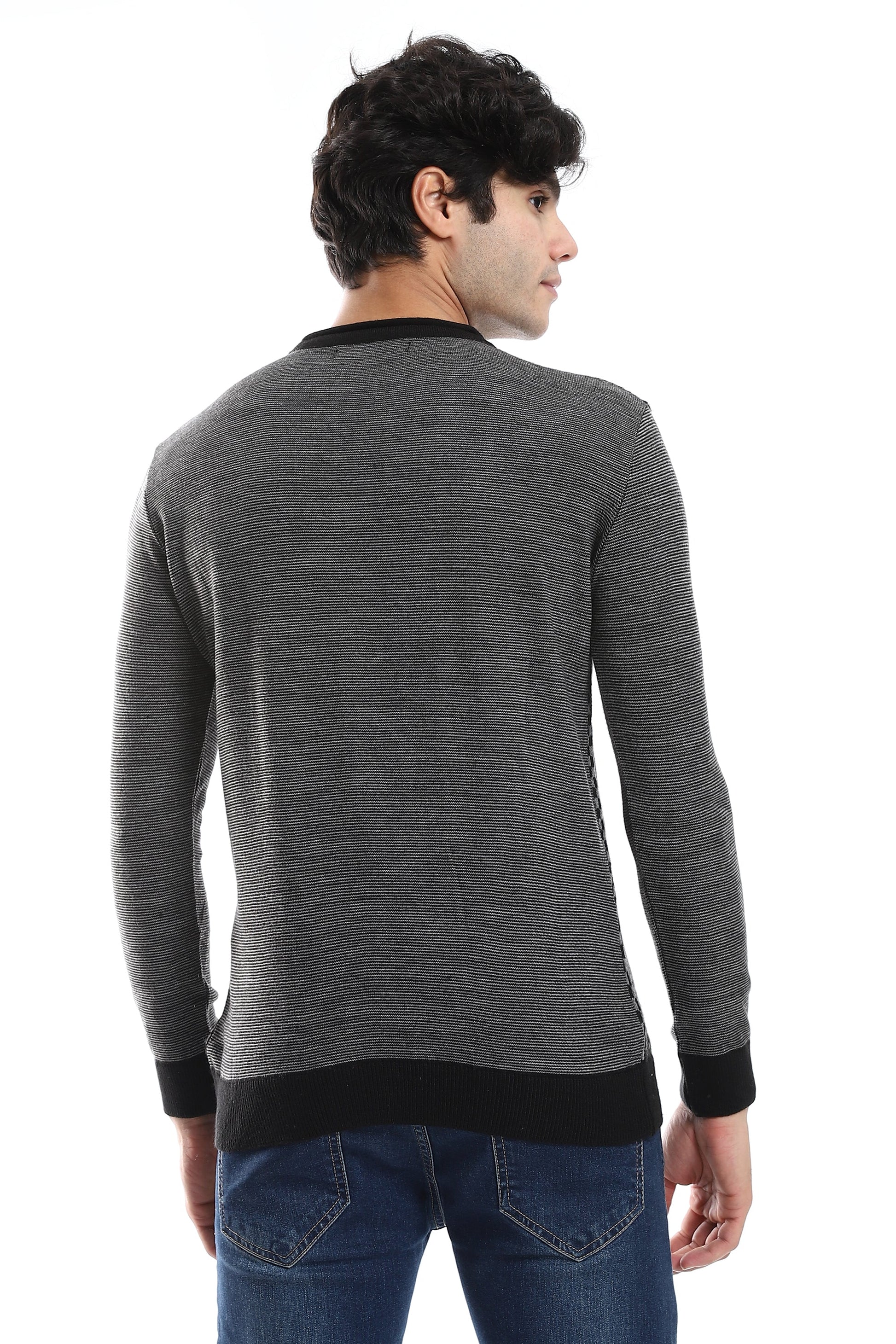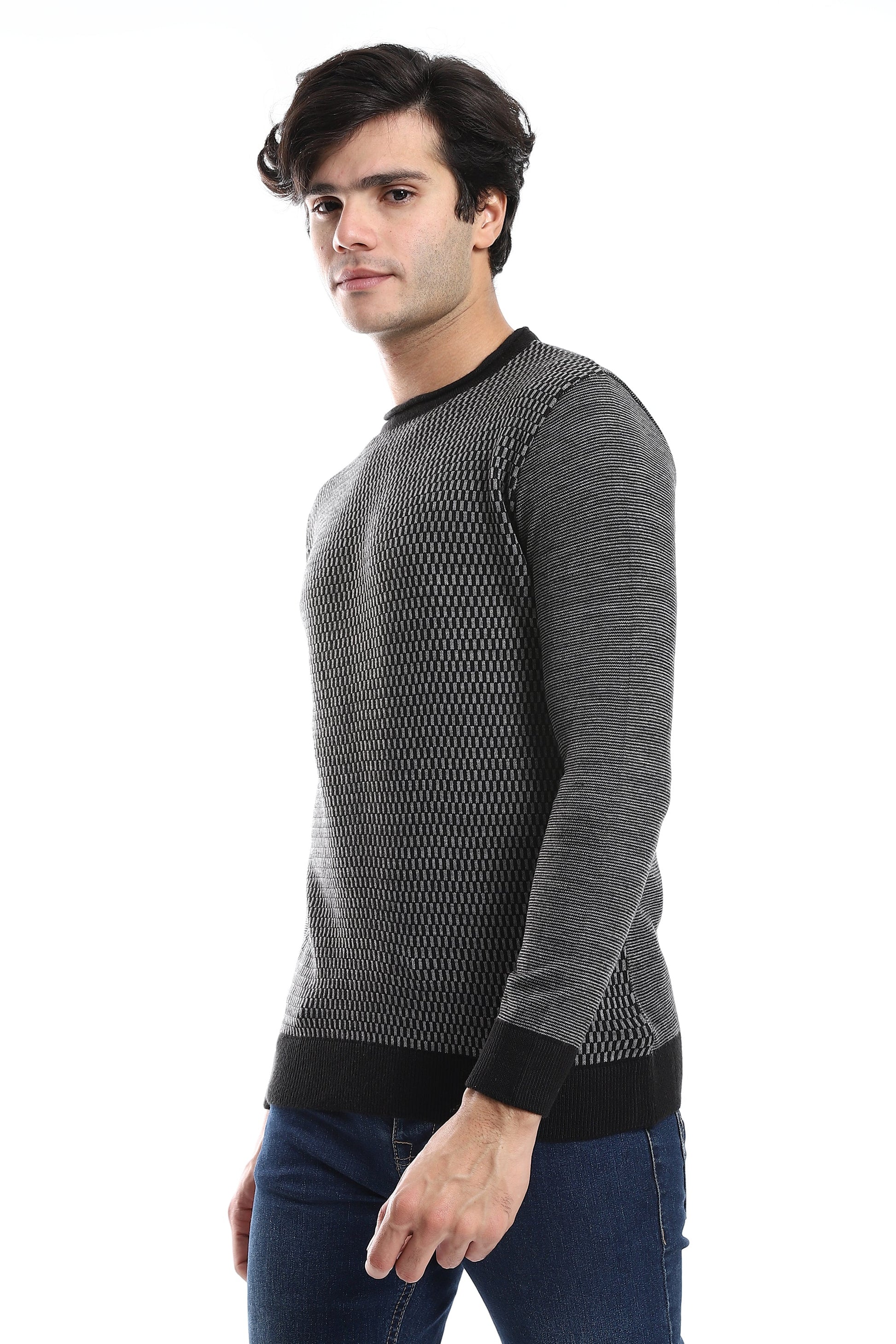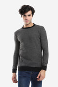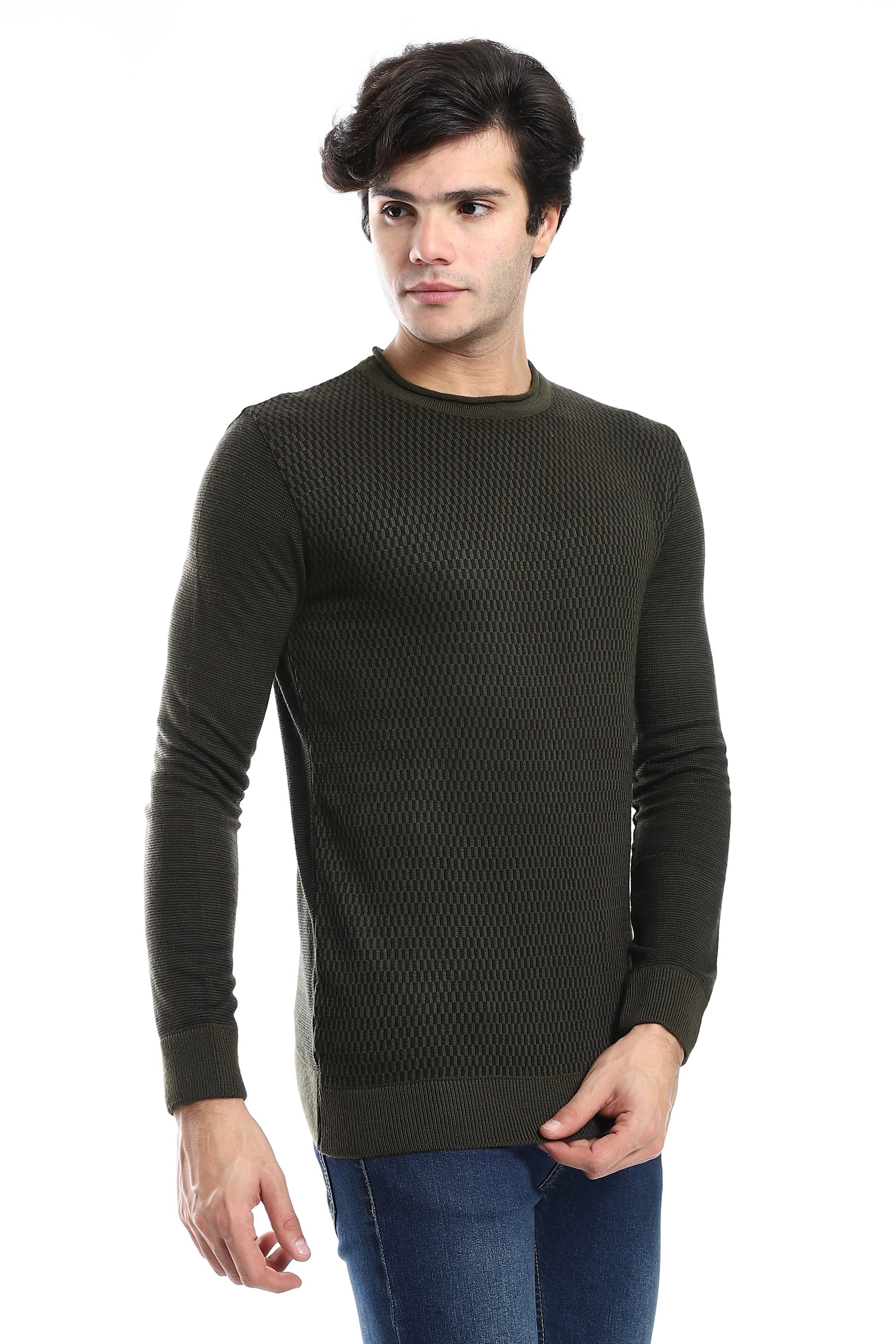 بلوفر محبوك بحاشية مضلعة - أزرق داكن