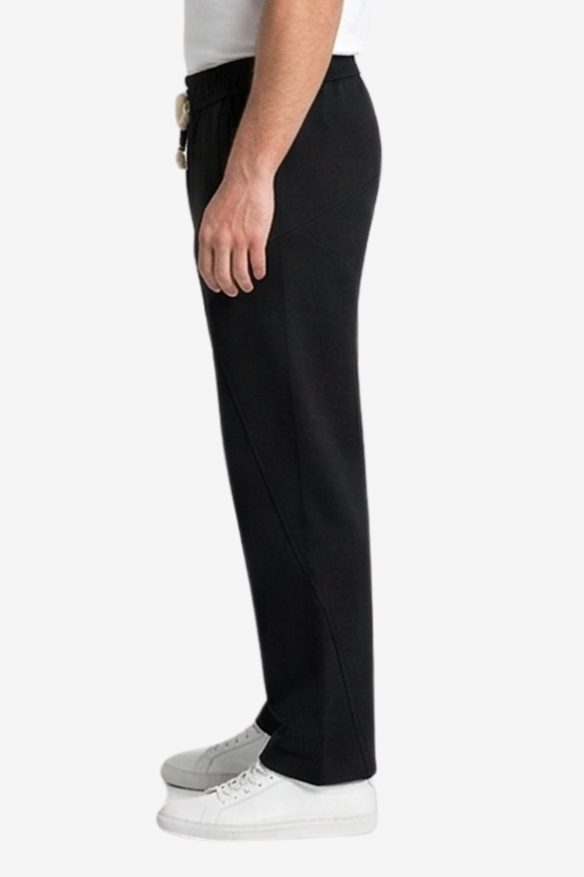 Men's Premium Cotton Wide-Leg Sweatpants – Relaxed Fit Joggers with Contrast Braided Drawstring -Black