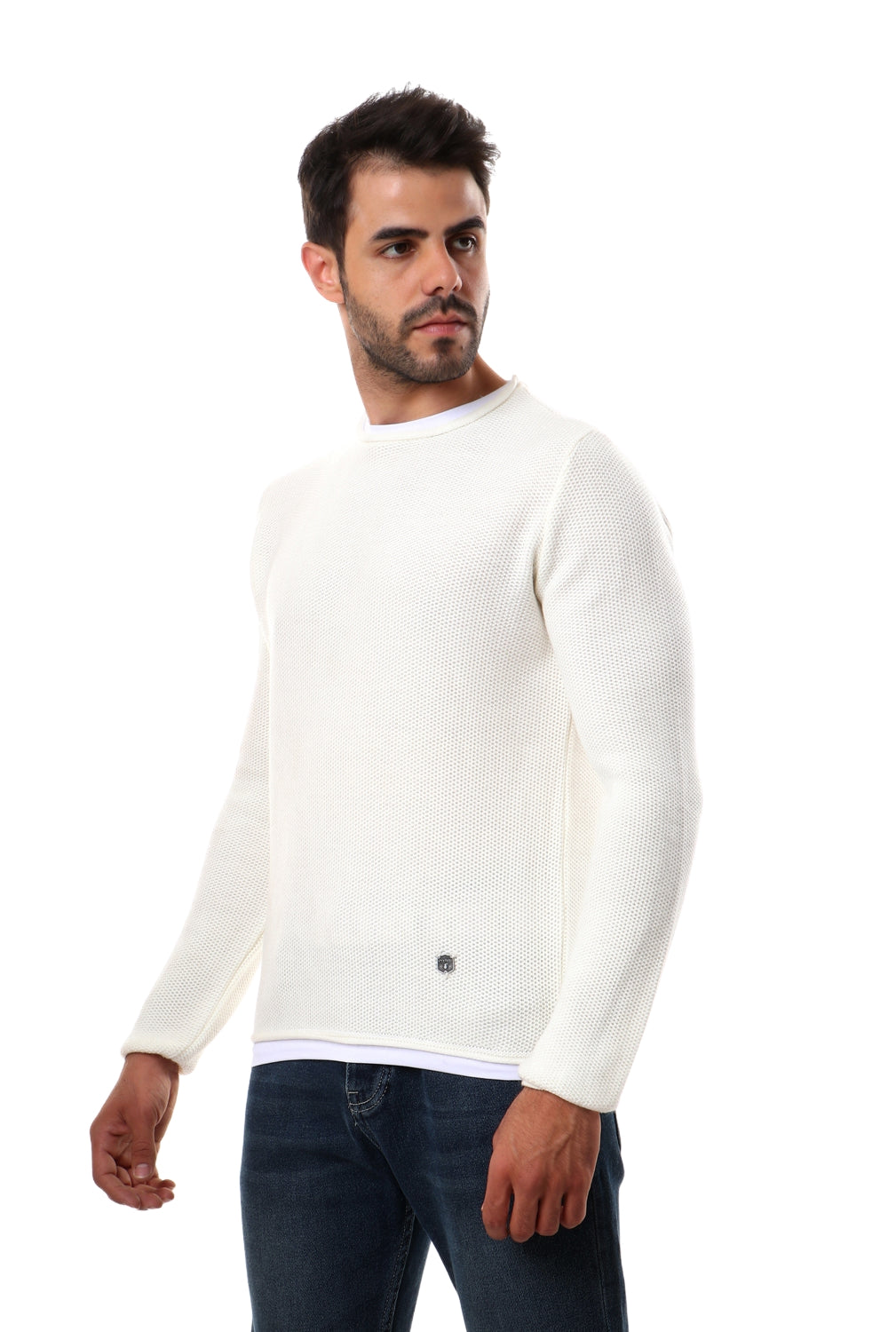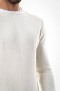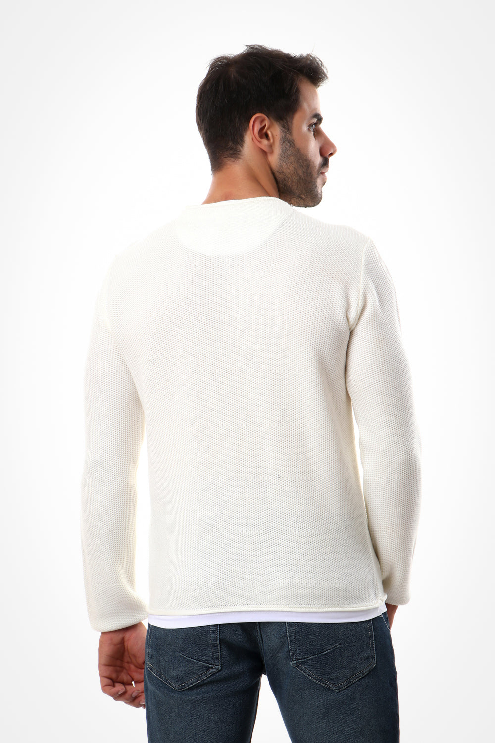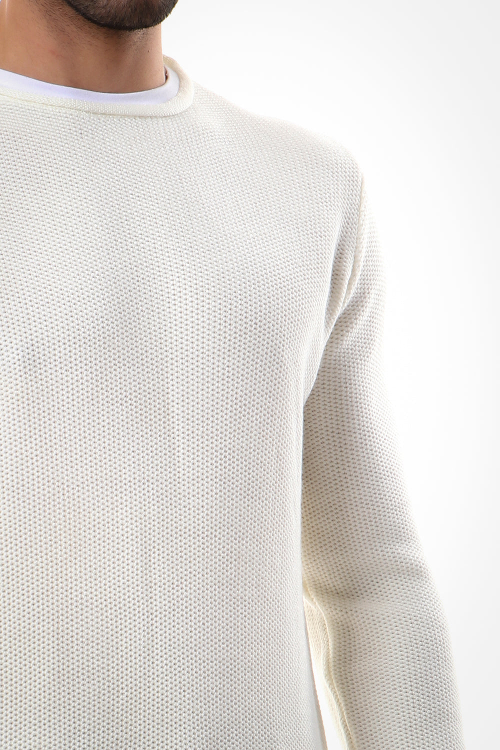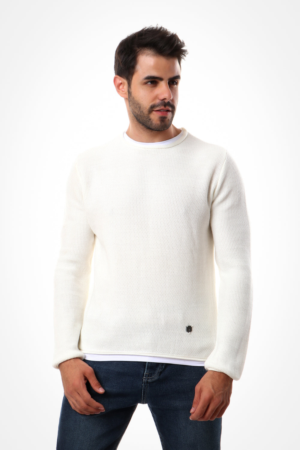 بلوفر محبوك من الأكريليك برقبة دائرية - وايت