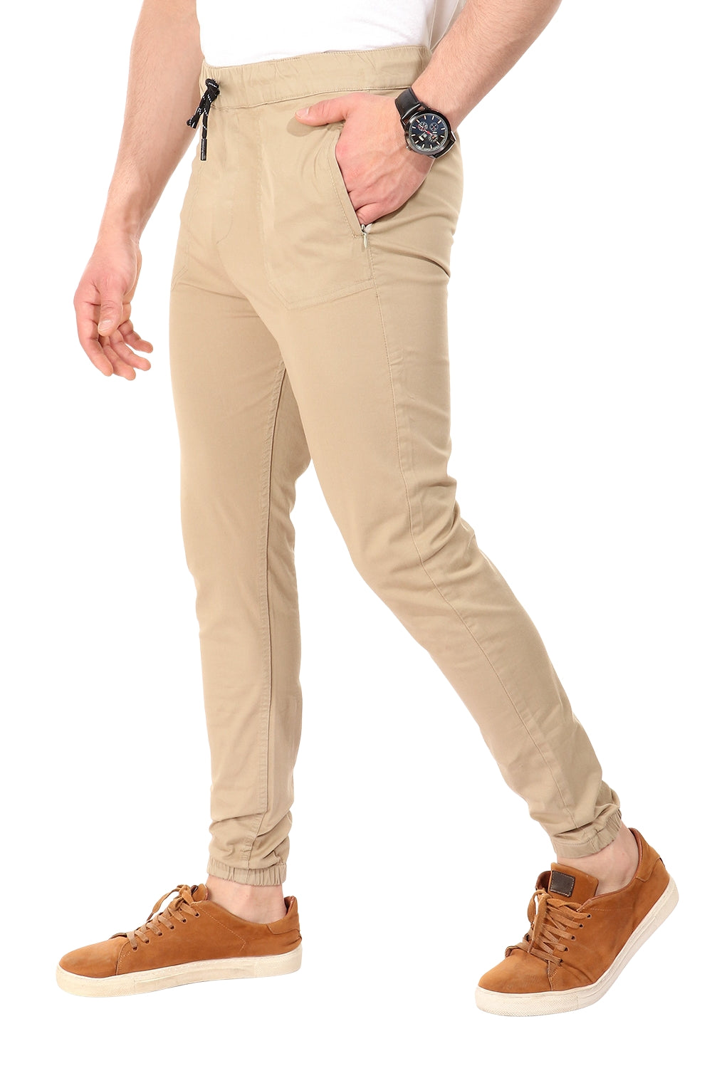 jebarden -Side Zipped Pockets Dark Beige Pants