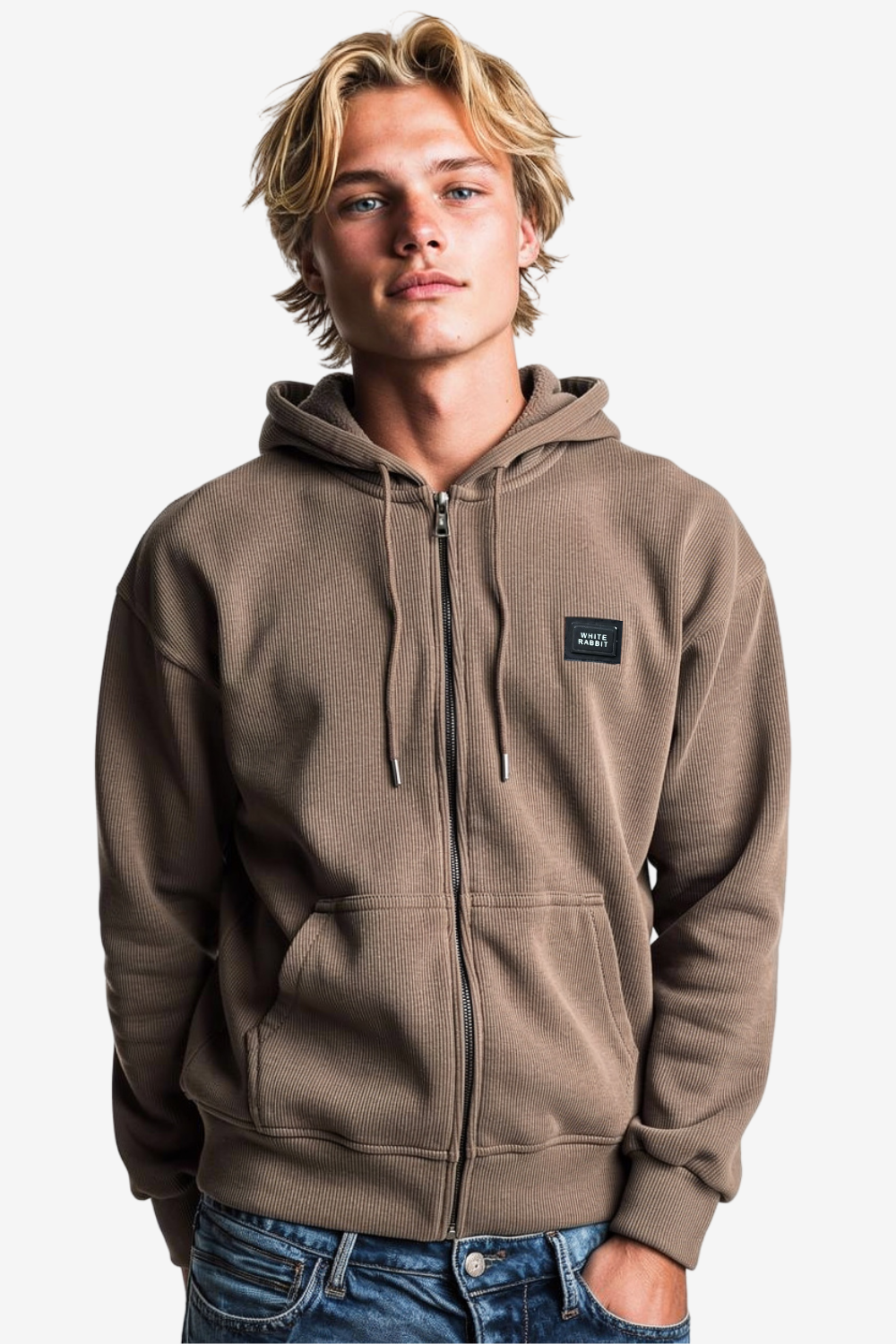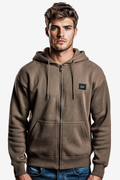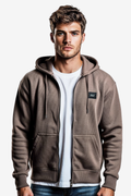 Basic Inner Fleece Zip Through Hoodie-Caffe