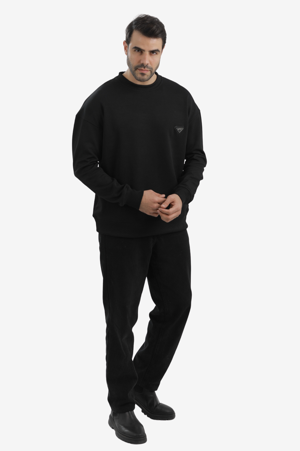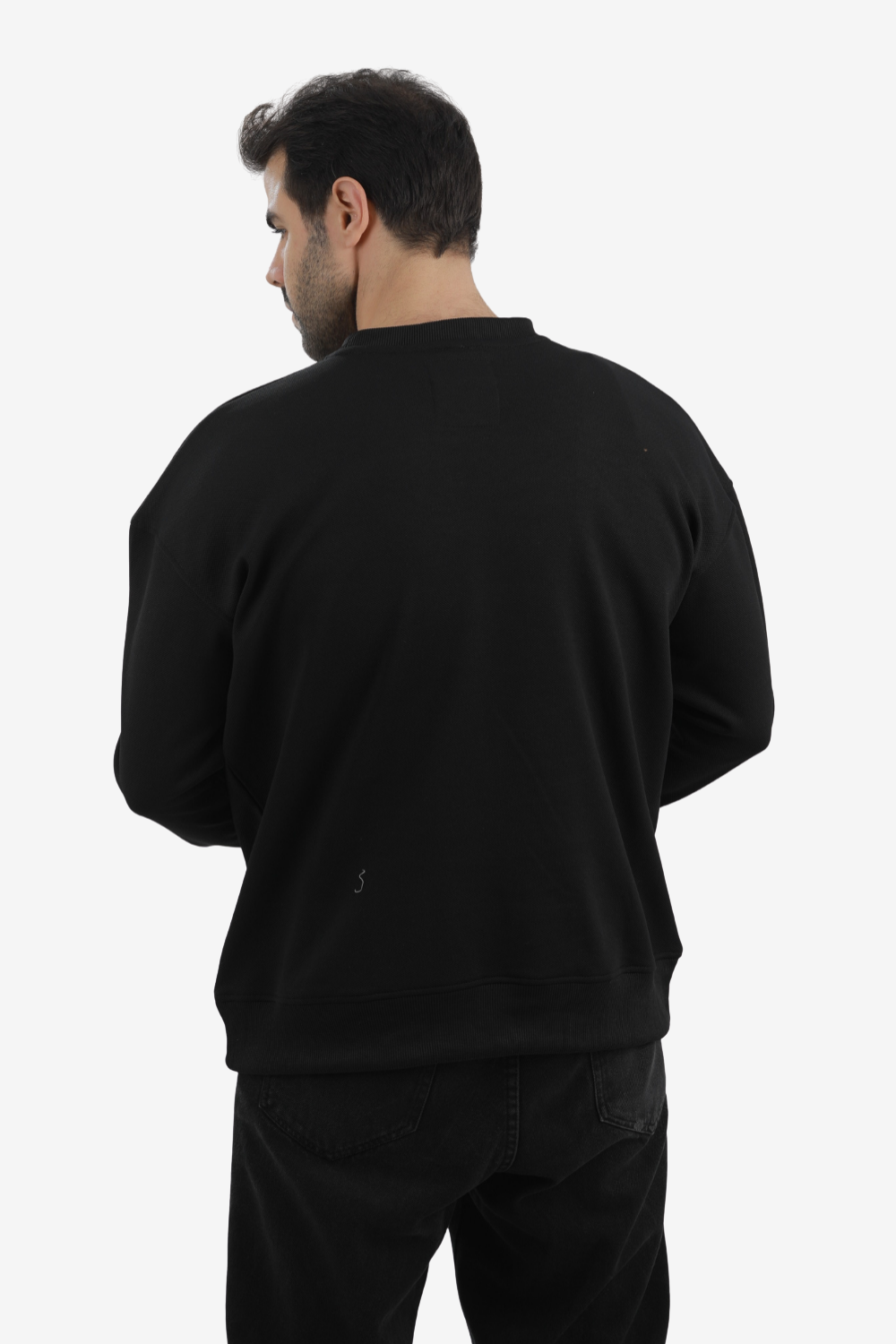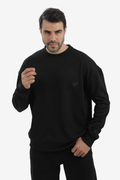 White Rabbit Men’s Cotton Piqué Sweatshirt with Mixed-Back Fabric – High-Quality Comfortable Everyday Wear – Black