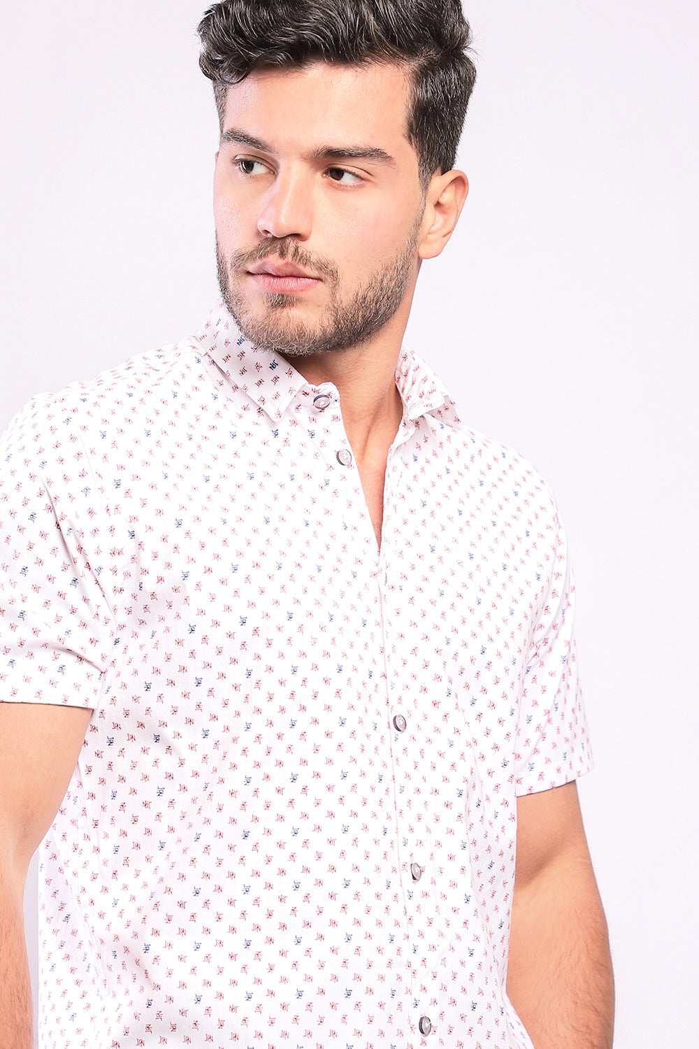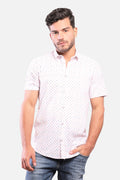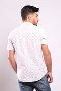 Buttoned Short Sleeves Sun Pattern Shirt – White