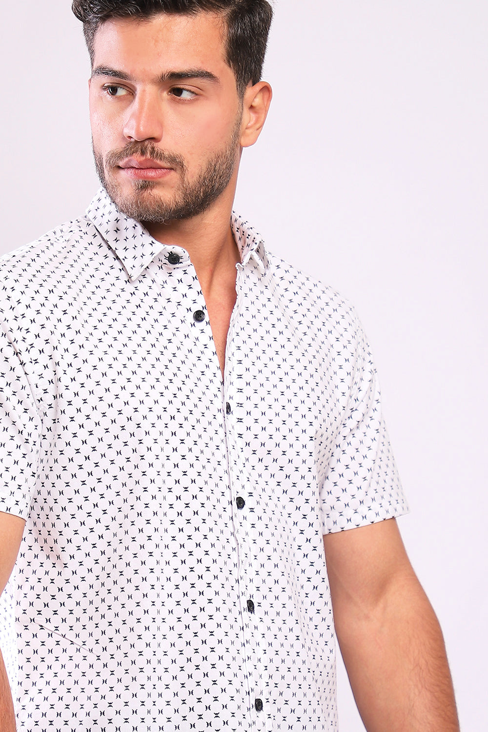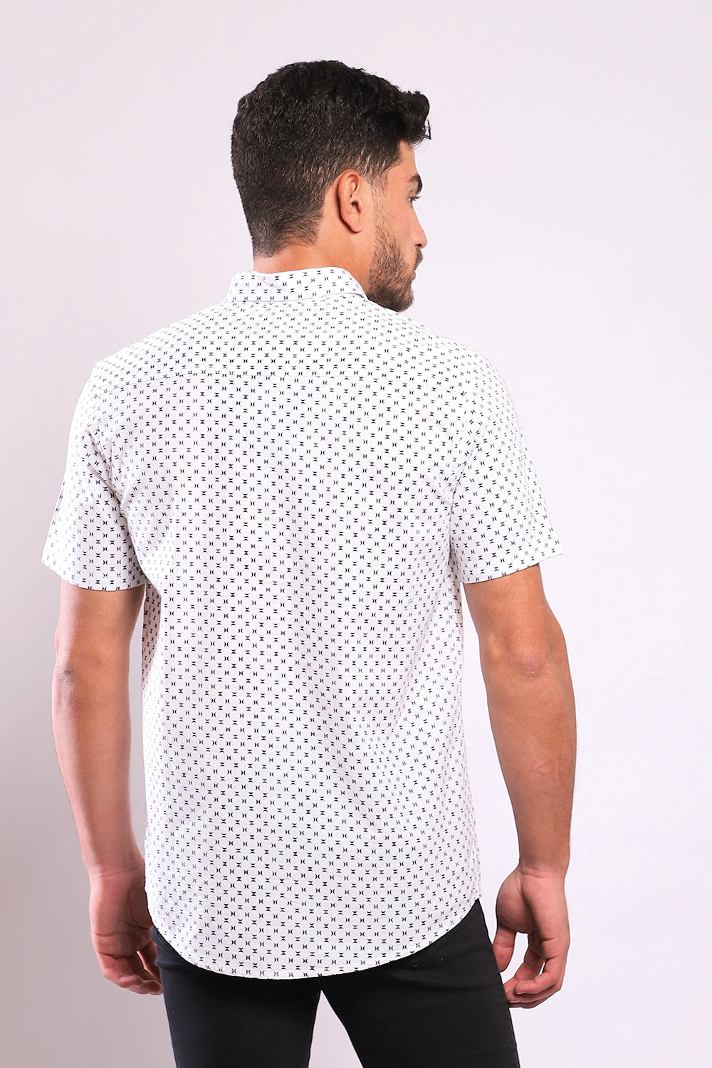 Buttoned Short Sleeves Sun Pattern Shirt – White